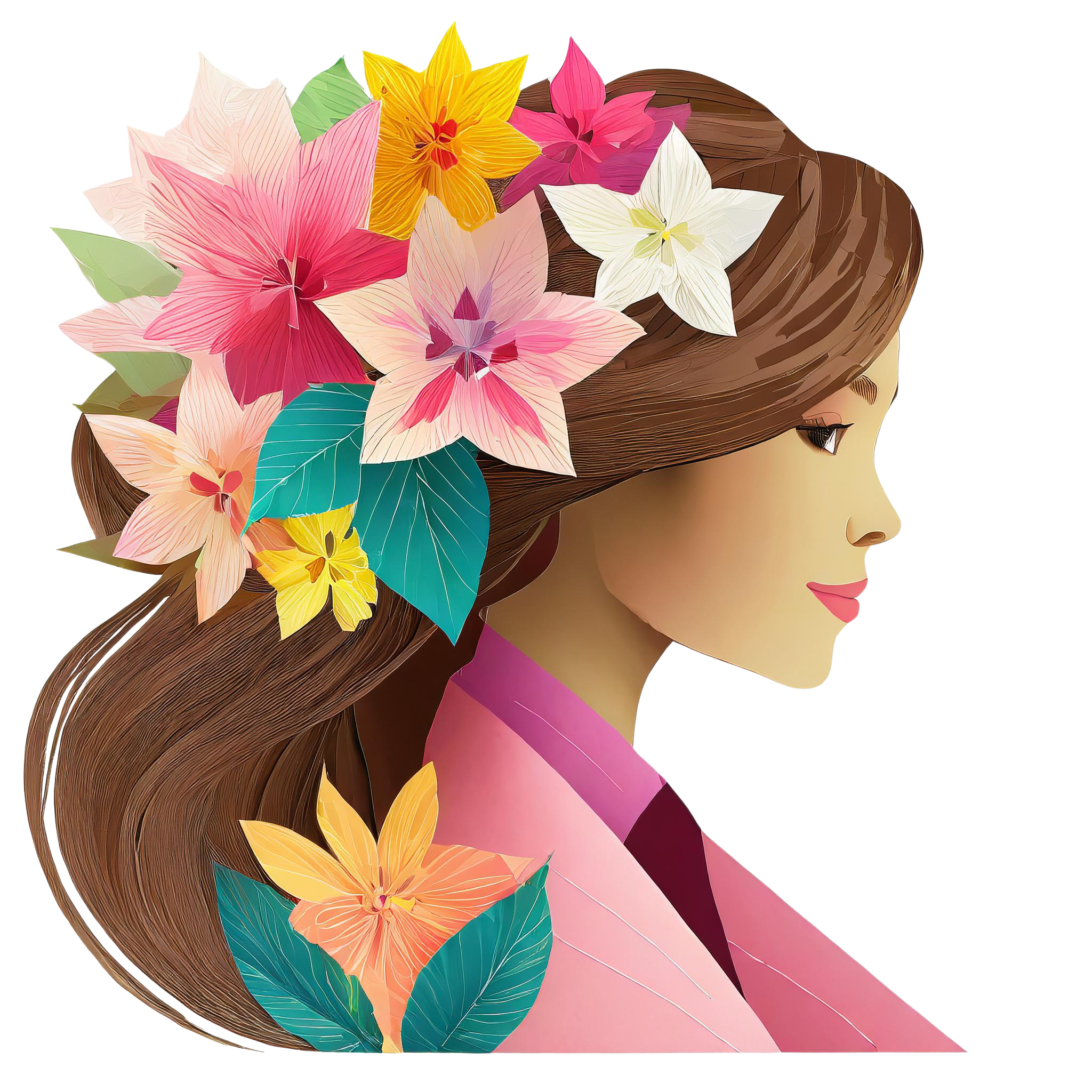 Downloading "Pink Silhouette of Woman with Colorful Flowers"