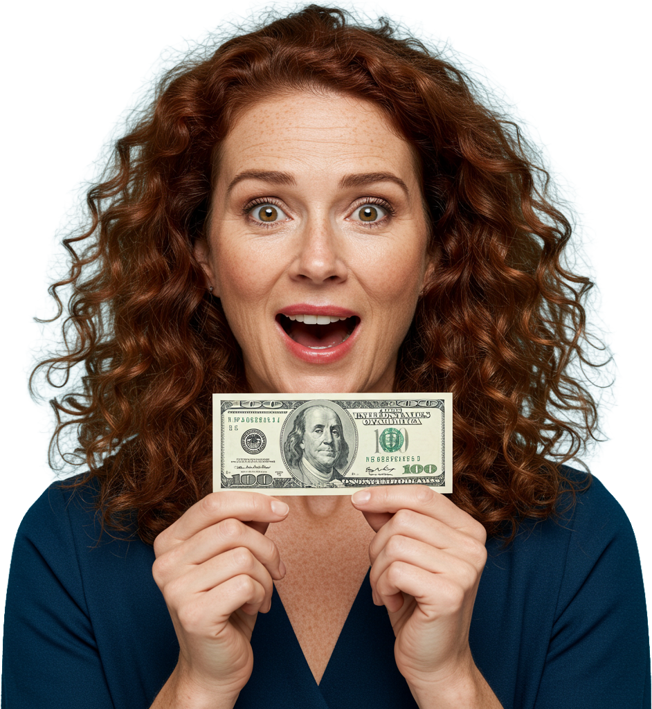 Downloading "Woman with 100 Dollar Bill PNG"