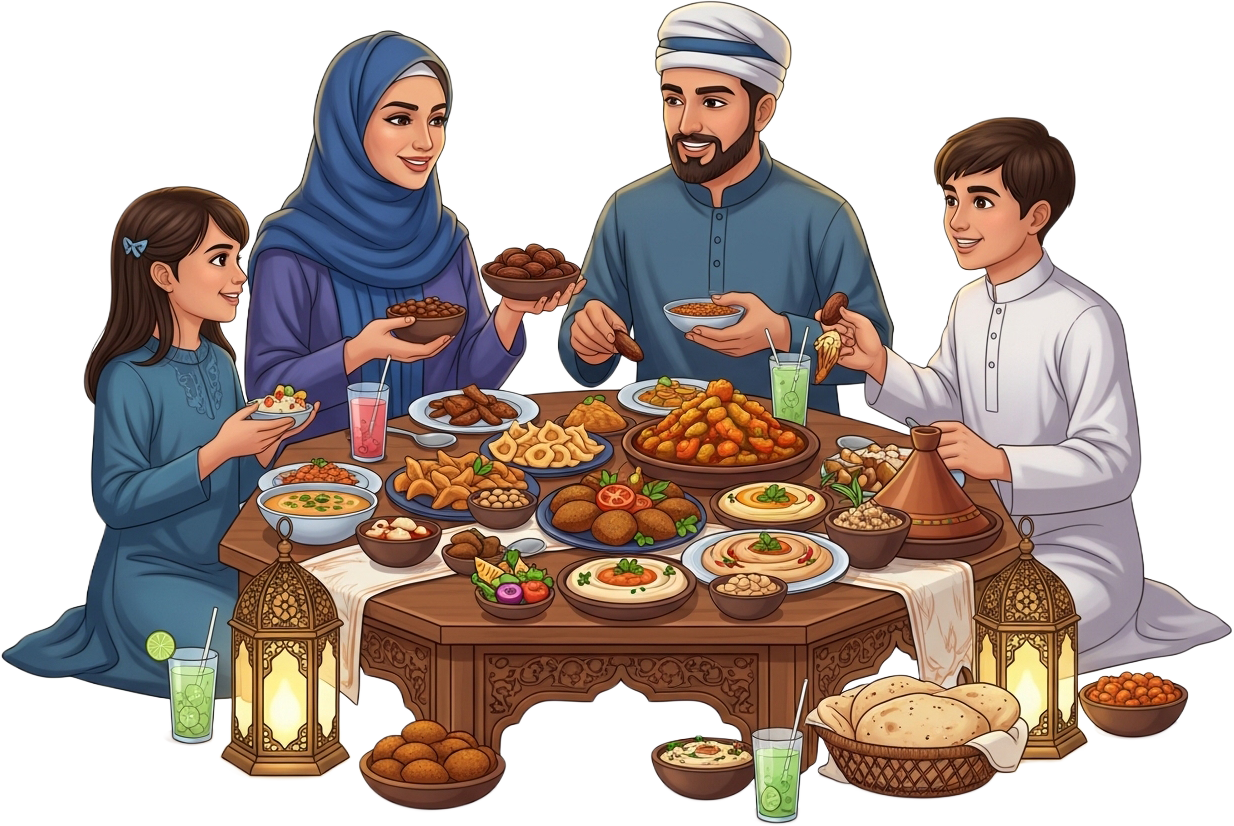 Downloading "Ramadan Family Iftar Traditional Meal Scene PNG"